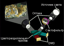 Лежащая в основе любого DLP - проектора технология цифровой обработки света (DLP) базируется на разработках корпорации Texas Instruments, создавшей новый тип формирователя изображения - цифровое микрозеркальное устройство DMD (Digital Micromirror Device).