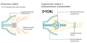 Рисунок 1.5 - Сравнение обычной лампы и лампы с технологий E- TORL