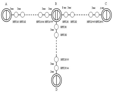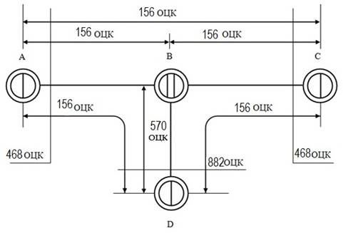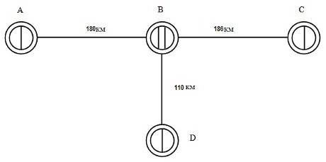 2. Вихідні дані згідно варіанту № 7. Згідно з варіантом завдання передбачається організація зв’язку між чотирма кінцевими пунктами (КП) А, В, С, D (рис.1) з заданими відстанями між |
