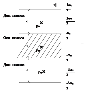 ,отстоящих друг от друга на расстоянии частоты квантования и расположенных по группам в каждой полосе. Для анализа свойств системы достаточно анализировать расположение корней в одной, так называемой основной полосе, в качестве которой обычно считают полосу частот