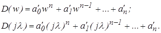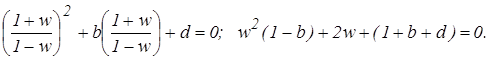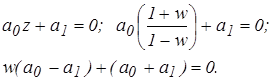 Выполнив подстановку z = (1+w)/(1-w) , в характеристический полином получим