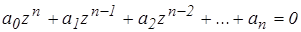представляет собой степенное уравнение, при этом число корней уравнения равно степени полинома - n