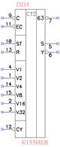 15 микросхем серии К155, 4 микросхемы серии К555, 1 микросхему серии К176, 16 конденсаторов, 32 резистора, 3 транзистора, 15 диодов.