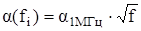 Коэффициент затухания коаксиального кабеля на любой частоте может быть найден αt