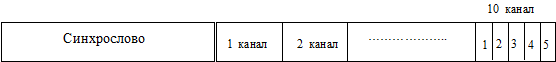 Канальные аналоговые сигналы поступают на кодирующее устройство, где преобразуются в цифровую форму. На выходе кодирующего устройства (т.1) имеется последовательность кодовых слов, представленных в последовательной форме в виде комбинации 0 и 1 и расположенных по порядку в соответствии с номерами каналов. Эта последовательность поступает на сумматор. Сюда же с генератора кадрового синхросигнала подается 13-ти разрядный код Баркера, являющийся кадровым синхросигналом. Работой кодирующего устройства и генератора кадрового синхросигнала управляет схема синхронизации, задача которой состоит в том, чтобы перед началом каждого кадра разрешать работу генератора кадрового синхросигнала и одновременно запрещать выход импульсов с кодирующего устройства. После окончания выдачи кадрового синхросигнала схема синхронизации сбрасывает генератор синхросигнала в начальное состояние, запирает генератор кадрового синхросигнала и разрешает работу кодирующего устройства. После выдачи информации о последнем канале схема синхронизации сбрасывает в начальное состояние кодирующее устройство, запрещает его работу и разрешает работу генератору кадрового синхросигнала и т.д. процесс повторяется.
