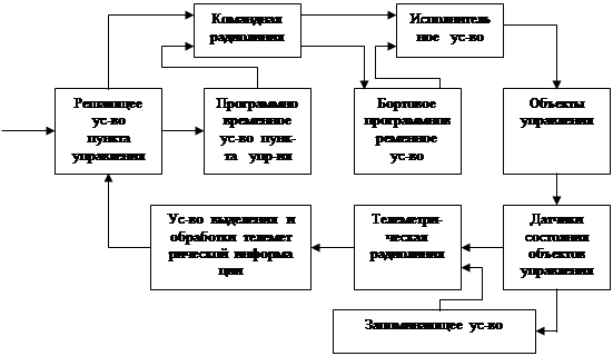 Информация о состоянии и работе объектов управления - бортовых приборов и агрегатов - получают с помощью датчиков, устанавливаемых на борту ЛА и связанных с контролируемыми величинами g ( t). Полученные с датчиков и соответствующим образом обработанные величины поступают непосредственно или через запоминающее устройство на вход телеметрической радиолинии и передается по ней на пункт управления. На пункте управления в устройстве выделения и обработки телеметрической информации получается оценка состояния объектов управления g* ( t), необходимая для осуществления требуемого управления бортовыми приборами и агрегатами. Формирование команд осуществляется в результате сравнения оценки g* ( t) с величиной gо ( t), задающей необходимое состояние объектов управления. Сформированные команды по командной радиолинии передаются на борт ЛА и поступают на исполнительное устройство, воздействующее на объекты управления. Контур радиотелемеханического управления оказывается замкнутым. В зависимости от решаемых задач, такое управление осуществляется либо как следящее, либо как корректирующее.