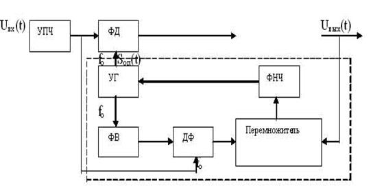 Как уже было отмечено в данной работе разрабатывалась совмещенная радиолиния КИМ-ФМ-ФМ. Интерес к цифрово передаче сообщений с помощью фазовой модуляции вызван в первую очередь тем, что согласно фундаментальным результатам теории потенциальной помехоустойчивости среди двухпозиционных сигналов противоположные сигналы, т.е. сигналы с однократной ФМ, потенциально обладают наибольшей помехоустойчивостью. Но при демодуляции простого фазоманипулированного сигнала возникает сложность в получении синхронного опорного напряжения, имеющего неизменную начальную фазу “явление обратной” работы фазового детектора. Имеется несколько методов и схем построения формирователя опорного колебания. Рассмотрим схему Костаса, обеспечивающую высокую помехозащищенность. В 1956 г. Американский ученый Д. Костас предложил схему формирования опорного напряжения для синхронного (когерентного) детектирования фазоманипулированных сигналов.