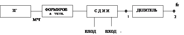 Задающий генератор вырабатывает меандр с частотой Fзг = m* fт, далее меандр поступает формирователь, формирующий короткие импульсы. Эти импульсы поступают на схему добавления и исключения единиц, которая работает следующим образом: если в момент времени между входными импульсами приходит импульс на вход +1, то в последовательность добавляется один импульс между входными; если в момент времени между входными импульсами приходит импульс на вход - 1, то из исходной последовательности исключается один импульс. Если ни на один из входов сигнал не подан, то исходная последовательность проходит на выход без изменений. На выходе делителя, выполненного на базе счетчика, будет меандр частоты, зависящей от количества добавленных или удаленных единиц в единицу времени и дискретностью, зависящей от коэффициента деления делителя.