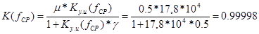 Коэффициенты усиления усилителя на низших частотах и fср =100 Гц: