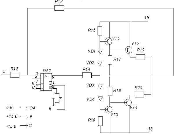 Значения резисторов R15 и R16 находятся из следующего уравнения: