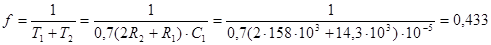 Таким образом, R1 =14,3 кОм. Частота генерируемых сигналов в данном случае равна: