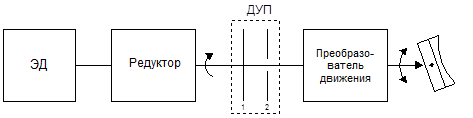 Электродвигатель может совершать возвратно-вращательное движение и одностороннее вращение. В зависимости от этого датчик углового положения может иметь различный принцип действия и конструкцию. Преобразователь движения может включать редуктор и преобразователь вида движения (перевод вращения из одной плоскости в другую, перевод вращательного движения в качательное).