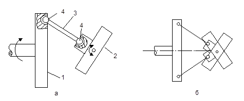 Передача движения от вала редуктора на пьезопреобразователь 1 осуществляется с помощью диска 2 (водило) через шатун 3 и шарниры 4 (рис 11,а). Так как ПЭП закреплен на оси, то он совершает качательное движение. Шатун при этом вращается по конической поверхности и все время проворачивается в шарнирах (рис. 11, б). Эта конструкция, конечно, не отвечает поставленным выше требованиям. На самом деле она значительно сложнее. Основной недостаток датчиков с качающимся ПЭП – неприятные ощущения вибрации, которые испытывает врач. Они накапливаются в течение длительного времени и иногда приводят к развитию синдрома вибраций. Поэтому в некоторых странах такие датчики даже запрещены. Тем не менее, секторные механические датчики в ряде случаев практически незаменимы (внутриполостные применения).