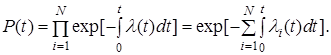 Таким чином, ми отримали формулу ймовірності безвідмовної роботи апаратури при експоненціальному законі розподілу інтенсивності відмов.