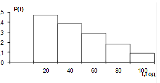 За даними статистичного ряду будуються гістограми для оцінки показників надійності. На рис. 1 як приклад наведена гістограма ймовірності безвідмовної роботи апаратури P(t):