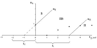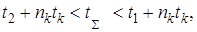 2. За формулами (42), (43) та (44) знаходимо час напрацювання t1 , t2 і tk .