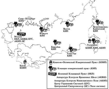 Принадлежит министерству обороны России. Является попыткой восстановить функционировавшую с 1982 года советскую систему. Находится на этапе повторного развёртывания спутниковой группировки (оптимальное состояние орбитальной группировки спутников, запущенных в СССР, было в 1993–1995 гг.). Современная система, по заявлениям разработчиков наземного оборудования, будет обладать некоторыми техническими преимуществами по сравнению с NAVSTAR. Однако в настоящее время эти утверждения проверить невозможно ввиду недостаточности спутниковой группировки и отсутствия доступного клиентского оборудования.