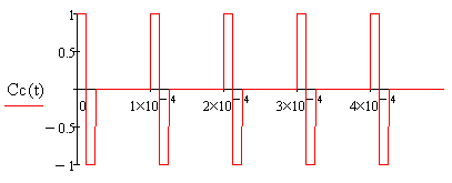 На рис.4 представлен вид когерентной прямоугольной пачки радиоимпульсов.
