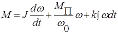 к = M/a — жесткость кинематического звена. Второе слагаемое второго уравнения момента характеризует суммарный момент сопротивления Мс.
