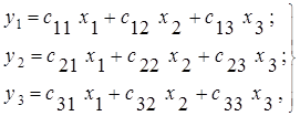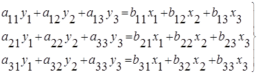 где х1 ,х2 ,х3 – входные, а у1 ,у2 ,у3 – выходные переменные; aij , bij – коэффициенты – вещественные числа, которые могут принимать также и нулевые значения.