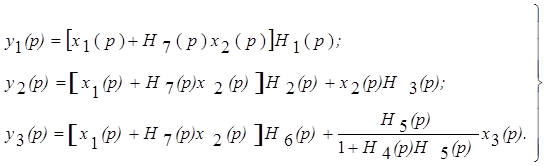 При записи уравнений динамика структуры системы уравнений будет аналогичной (3.5), но вместо yi и xi будут фигурировать временные функции xi (t) и yi (t) или их операторные изображения xi (p) и yi (p), а вместо коэффициентов aij , bij – оперторные полиномы.