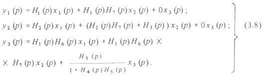 Записав уравнения по типу (3.2), получим, например, для установившегося режима трехсвязной линейной системы уравнения вида: