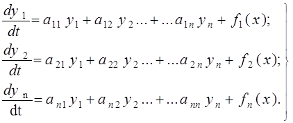 Здесь Y(f) - столбец неизвестных выходных функций времени или переменных состояния; F (t) — столбец задающих (входных) функций времени; А, В — квадратные матрицы постоянных коэффициентов.