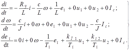 Запишем выражения для динамической модели объекта в виде системы дифференциальных уравнений в канонической форме: