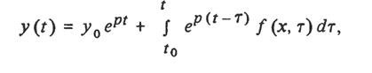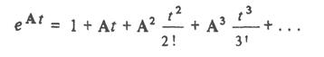 где τ — переменная интегрирования, можно доказать, что и для матричного выражения системы дифференциальных уравнений можно напирать аналогичное выражение для ее решения. Здесь матричная экспоненциальная функция еAt может быть представлена рядом системы уравнения вида: