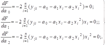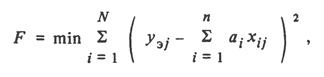 Далее, используя методику минимизации суммы квадратов отклонений, т.е. функционала вида