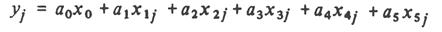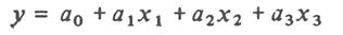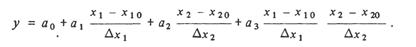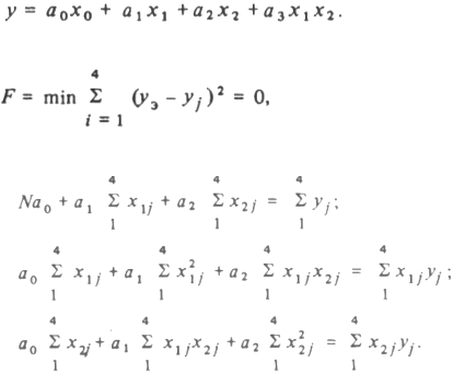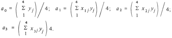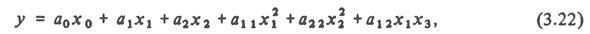 Колонки 4 и 5 имеют значения, аналогичные колонке 0, т.е. не дают дополнительной информации, поэтому следует ограничиться четырьмя колонками лго > xl 9 x2 и хх х2 (участок табл. 3.4, очерченный двойными линиями). Получим модель вида путем приравнивания нулю частных производных по ai получаем систему уравнений