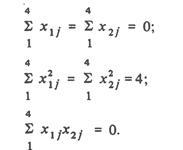Если эксперимент спланирован с выполнением условий симметричности, нормированности и ортогональности, то рассмотренные выражения окажутся проще, так как