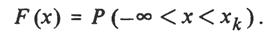 Законы распределения чаще всего представляются в виде интегральной F(x) или дифференциальной f(x) функции распределения. Первая применяется для дискретных величин и определяет вероятность того, что случайная величина не превышает некоторого фиксированного ее значения хk , т.е. вероятность ее нахождения в интервале