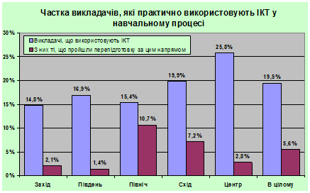 - відсутність діючого механізму накопичення, узагальнення і поширення передового досвіду використання ІКТ в освітній діяльності ВНЗ та інших навчальних закладів;