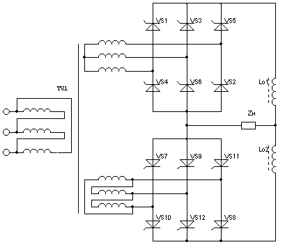 Рис.1.1 — Двенадцатипульсный составной управляемый выпрямитель с параллельным включением вентилей