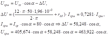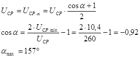 В управляемом режиме работы выпрямителя находим: