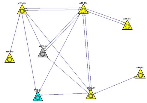 4. Существующая гибридная сеть должна содержать три АТСК, три АТСЭ, УСС. Связь с междугородной сетью осуществляется в зависимости от варианта либо через АМТС, либо через УЗСЛ и УВСМ. Сформировать базы данных существующей сети по четырем вариантам: “каждый с каждым”, “радиальный”, ”кольцо”, “прагматичный" (наиболее практичный для данного случая). Примечание: во всех вариантах узлы должны находиться в одних и тех же географических точках.