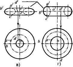 Эллиптический тор образуют вращением эллипса вокруг прямой, лежащей в плоскости этого эллипса и не являющейся его осью. Обычно за ось вращения берут прямую, перпендикулярную большой (рис. 5, в) или малой оси эллипса (рис. 5, г). Две координатные плоскости пересекают такой тор по эллипсам, третья - по окружностям.