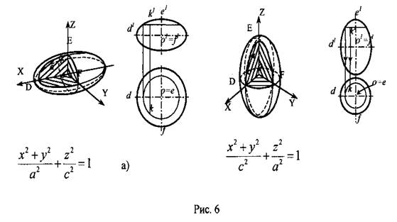 Пл. ХОZ и УОZ пресекают их по эллипсам DЕ и ЕF, а пл. ХОZ - по окружности DF.