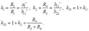 Таким образом, выбором численных значений коэффициентов передачи цепей связи первого и второго ОУ (