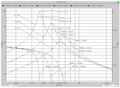 Поэтому при моделировании схемы фильтра в среде Cadence использовались следующие номиналы пассивных элементов: