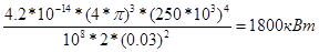 РПАП =1800×104 ×2×(250×103 )2 ×50 / (4×p×0,5×(50×103 )4 ×100×0,052 ×0,01×0,1) = 1146 кВт.