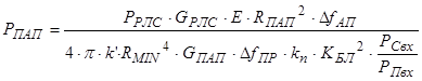 Если самолет-ПАП находится на границе зоны обнаружения (RПАП =250 км), предполагаемое значение kП =0,01 (-40 дБ), k’=0,5, DfАП /Dfпр =50, GПАП =100, КБЛ =0,05, и задано отношение РС ВХ /РП ВХ = 0,1 то