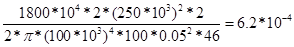 РПАП =1800×104 ×2×(250×103 )2 ×2/(0,5×(50×103 )4 ×1000×4×p×0,052 ×0,01×0,1)=46 кВт.