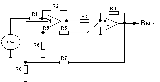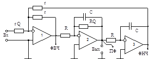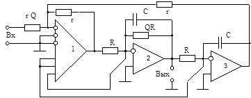Рис. 1. Низкочувствительное звено полосового типа с собственной компенсацией