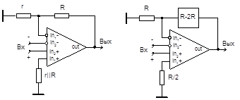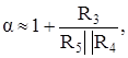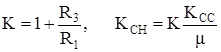 Для неинвертирующего входа, при условии, что сопротивления резисторов R1–R3 равны, коэффициент усиления можно записать как