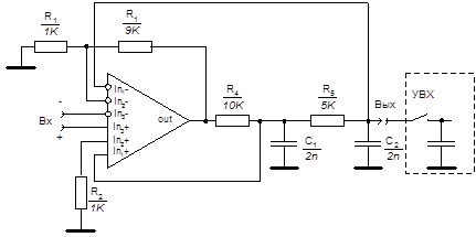 Граничная частота fГР при условии, что fГР <1.5 f1 /K, C2 >>CУВХ и неравномерность амплитудно-частотной характеристики интерфейса, определяется параметрами фильтра нижних частот: