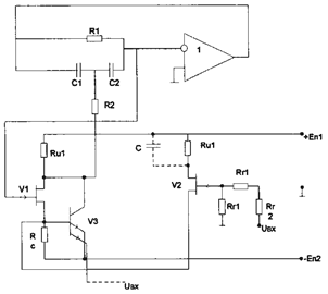 и при использовании блокирующего конденсатора С (Rи2 ~ =0) точность реализации требуемого К0 определяется в основном идентичностью режимов работы V1 и V2 (стабильностью отношения крутизны S1 и S2 ). При К0 <2Q2 –1 это свойство обеспечивается глубокой обратной связью через Rи2 V2.