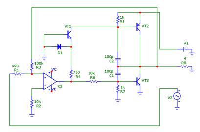 Данное устройство формирует однополярные импульсы при подаче на вход синусоидального сигнала.