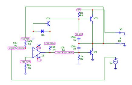 Проведем анализ схемы по постоянному току используя программное обеспечение Micro-CAP V9